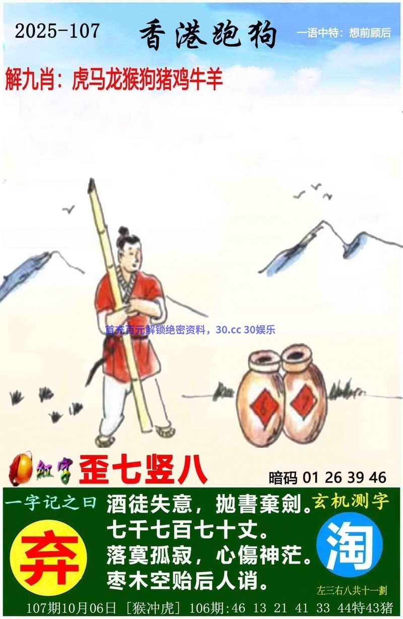 106期:七尾【0134568】开:猪43准